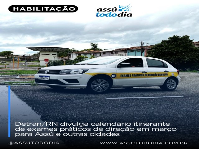 O Departamento Estadual de Trânsito do RN (Detran) divulgou nesta segunda-feira (02) a série de testes práticos programada para avaliação de condutores no interior do Estado durante o mês de março. As equipes de examinadores vão percorrer 32 cidades, com início em João Câmara e São Paulo do Potengi.