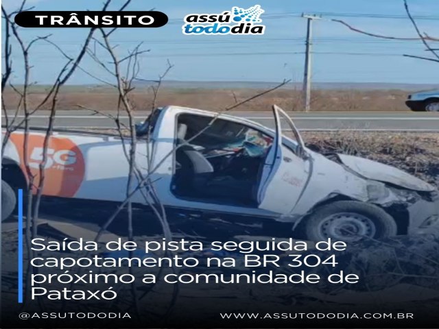 Uma caminhonete Hilux pertencente a uma empresa prestadora do serviço de fornecimento de internet e TV por assinatura capotou na BR 304 próximo a comunidade rural de Pataxó entre Itajá e o acesso ao município de São Rafael. A ocorrência foi registrada nas primeiras horas desta sexta-feira, dia 26 de dezembro.